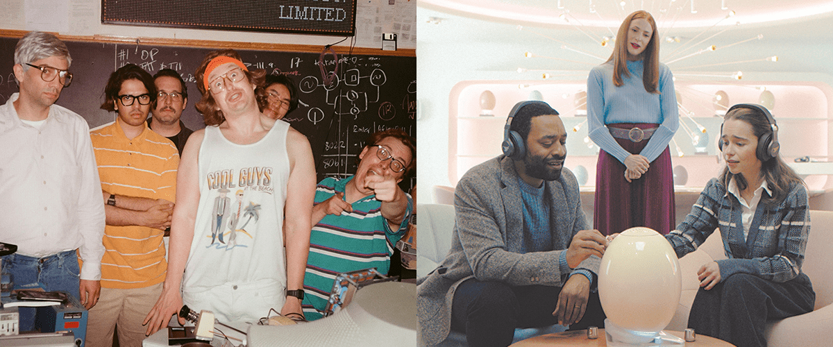 L: The cast of BlackBerry. Courtesy of IFC Films/SFFILM. | R: Chiwetel Ejiofor and Emilia Clarke in The Pod Generation. Courtesy of MK2/SFFILM.